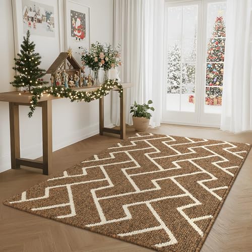 Cosyearn Dörrmatta, ytterdörrmatta, välkomstmattor för entré, garage, högtrafikområden, 117 x 81 cm, stor storlek, dörrmatta, vattentät matta, lätt att rengöra, inifrån utsidan, halkfri (brun)