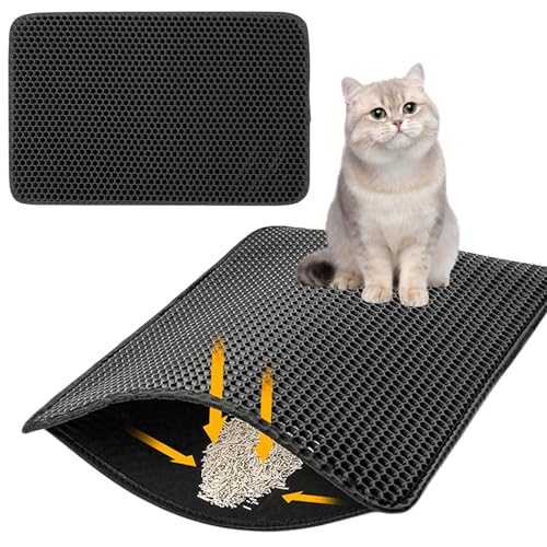 Vegena Matta för kattlåda, kattmatta 90 x 60 cm, kattsandsmatta, vattentät kattlåda, matta med dubbla lager, bikupa, kattlåda, underlägg, lätt att rengöra för katter hundar