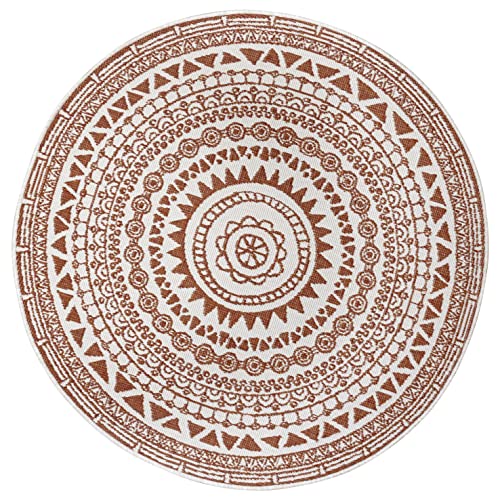NORTHRUGS Inomhus- och utomhusmatta Coron rund diameter 140 cm – vändbar matta väderbeständig modern grafisk design löpare för balkong uteplats trädgård vinterträdgård vardagsrum matta vattentät i