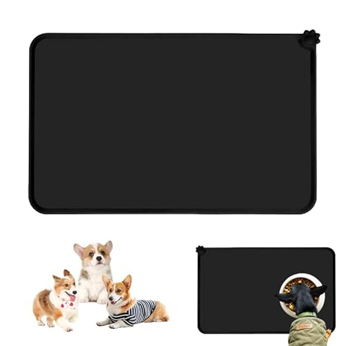 Skålunderlägg för hund, katter, 48 x 30 cm, silikon, skålunderlägg, silikon, vattentät, husdjursmat, matta, halkskydd, husdjur, matmatta, kattskålsunderlag (svart)