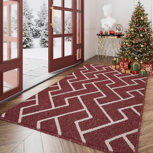 NORTHRUGS Inomhus & utomhus matta, 160 x 230 cm, Intemperie Resistent, Modern design i Zigzag, Balkong, Terrass, Trädgård, Växthus, Vattentät matta i Cayenne