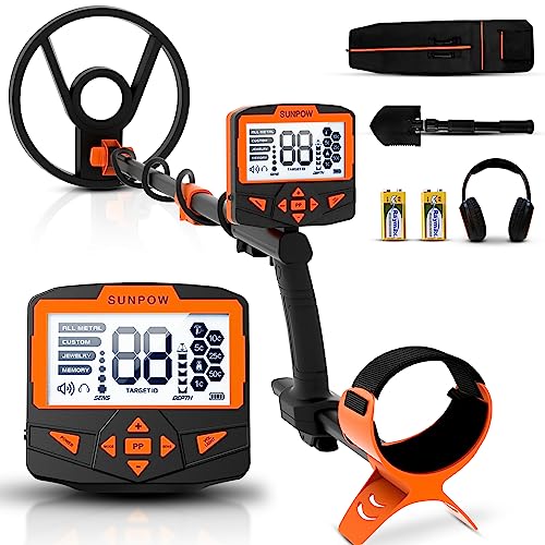 SUNPOW Professionell Metalldetektor för Vuxna – Hög Precision, Vattentät Spole på 30 cm, LCD-skärm med Bakgrundsbelysning 2X, Avancerad DSP-chip, 5 Lägen, Justerbar Längd