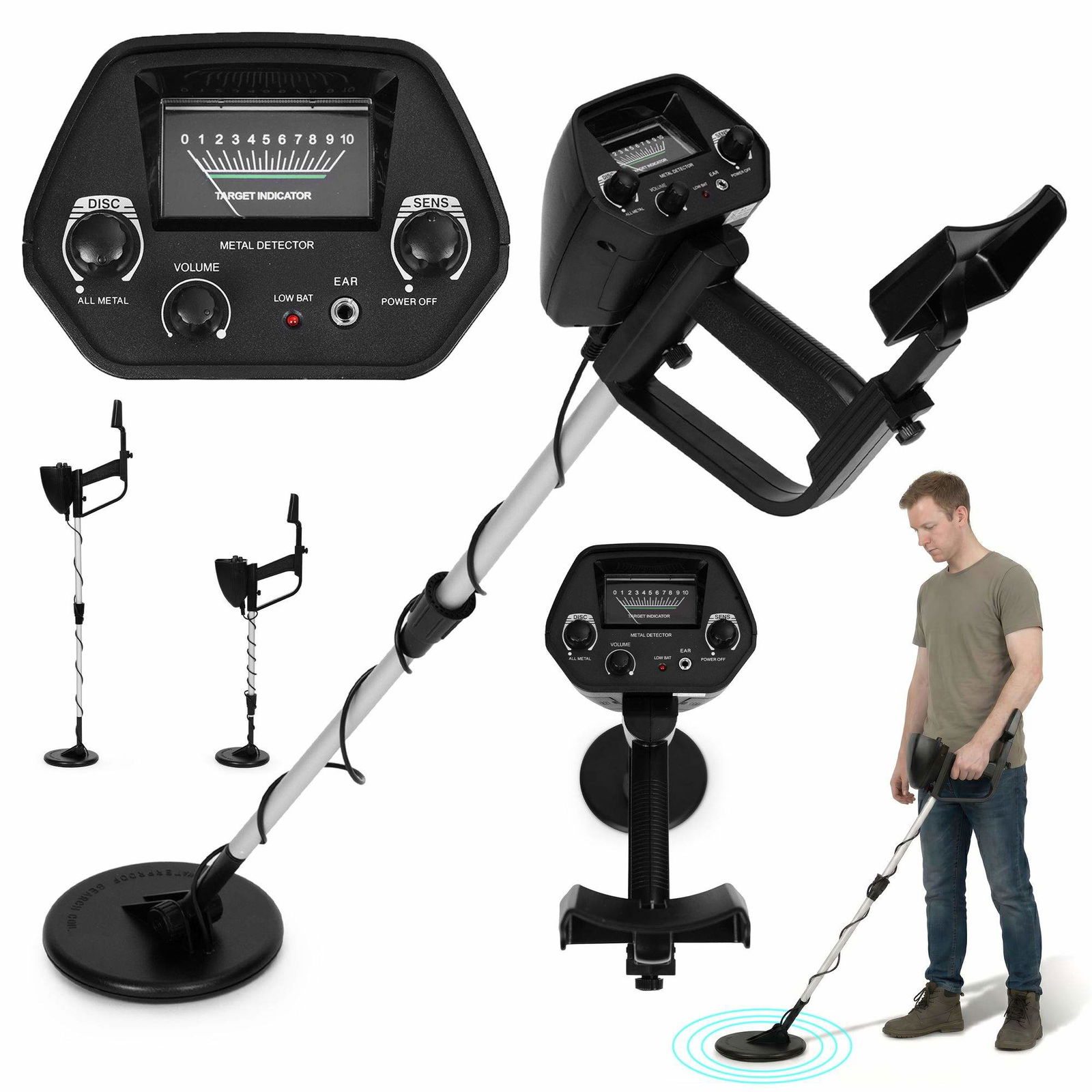Metalldetektor med dubbla lägen – vattentät spole, justerbar