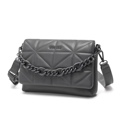 Miss Lulu Små axelväskor för kvinnor, mjuka klassiska quiltade handväskor med bred rem PU-läder vattentät axelväska för mobiltelefon som present till flickor, Mörkgrå
