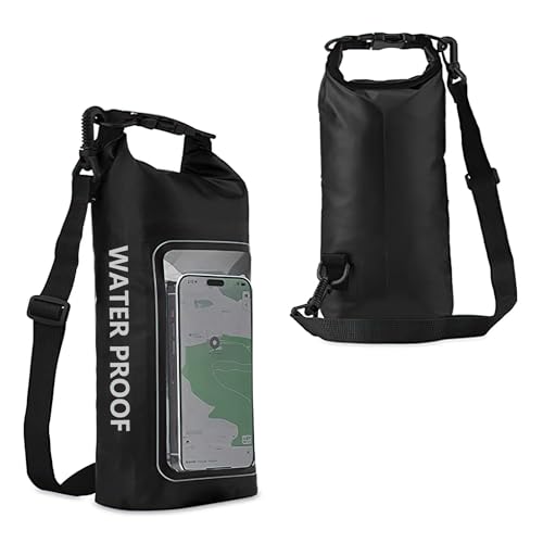 Vattentät Ryggsäck, 2 L Utomhus Axelväska 2-i-1 Mobiltelefon Vattentät Väska Transparent PVC Utomhus Vattentät Väska för Pool Strand Skidåkning Ridning Hav Fiske, Svart, Minimalistisk Och
