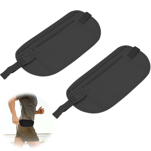 OIGWBPH 2 st dolt pengarbälte, stöldskyddsväska, sportväska, justerbart bälte, vattentät resväska för mobiltelefon, pass, kontanter (svart)