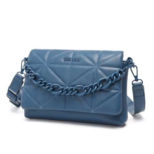 Miss Lulu Små axelväskor för kvinnor, mjuka klassiska quiltade handväskor med bred rem PU-läder vattentät axelväska för mobiltelefon som present till flickor, Klassisk blå