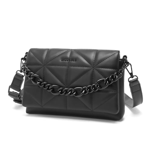 Miss Lulu Små axelväskor för kvinnor, mjuka klassiska quiltade handväskor med bred rem PU-läder vattentät axelväska för mobiltelefon som present till flickor, svart, L22*W4*H16cm