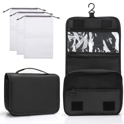 Zivacate hängande necessär, vattentät sminkväska, tvättpåse med handtag vikbar bärbar kosmetisk förvaringsväska med 3 dragsko organiseringsväska för resor affärsresor fitness camping utomhus -Svart