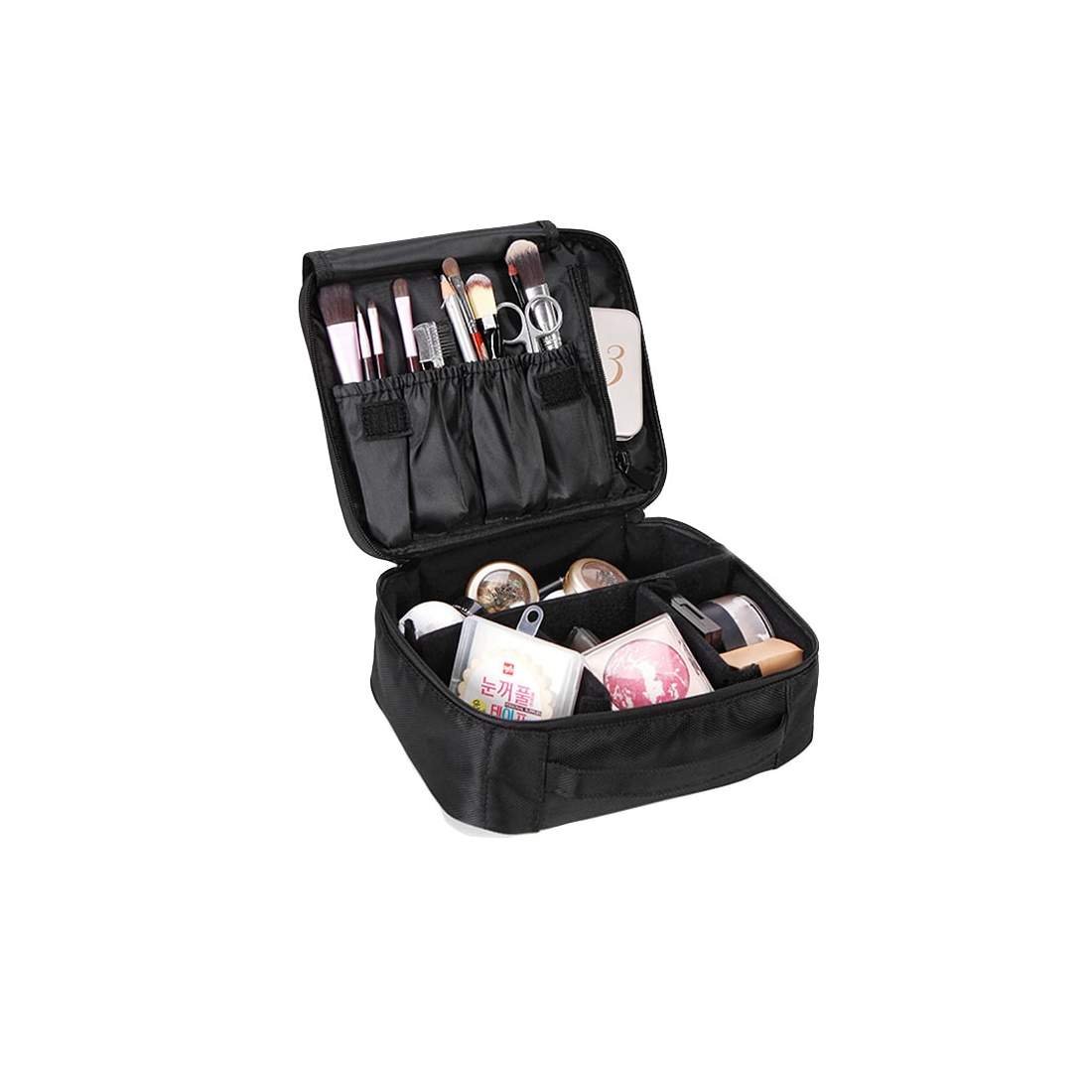 Prite makeupväska med stor kapacitet, bärbar resesminkväska, vattentät, PU-läder, necessär platt liggande smink organiseringsfodral med tydlig avdelare och handtag, 01svart, M