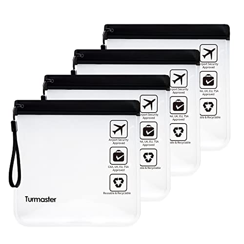 Turmaster 4-pack flygplatsgodkänd klar necessär, läckagesäker flygplats säkerhetsgodkänd vätskepåse 20 * 14.5 * 5cm, vattentät necessär för resor, Svart