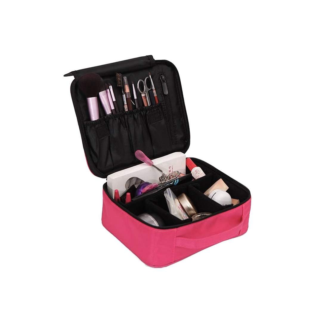 Prite stor sminkväska för kvinnor rese sminkväska vattentät läder necessär bärbar smink organiseringsväska med handtag och avtagbar avdelare, Pärlrosa