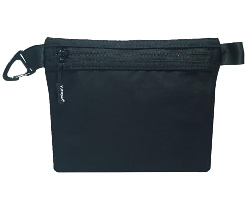 YUMQUA Liten necessär, vattentät nylonväska med dragkedja med karbinhakar, mångsidig förvaringspåse för digitalt sminkverktyg, svart, Handgepack, Necessär för resor