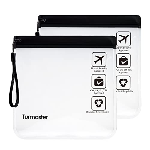 Turmaster 2-pack flygplatsgodkänd klar necessär, läckagesäker flygplatsgodkänd säkerhetsgodkänd vätskepåse 20 x 20cm, vattentät necessär för resor, svart med handtag