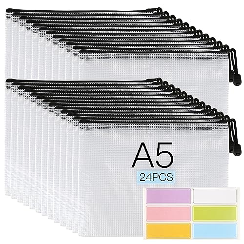 24 st plastplånböcker mappar, 8 storlekar plastmappar dragkedja låspåsar, vattentät nät dokument plånbok förvaringsväskor för skola, hem, kontor och resor (8 färger)