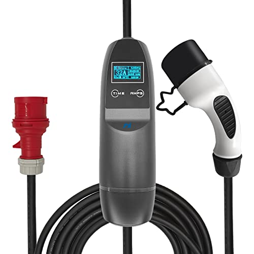 KHONS Typ 2 laddkabel med CEE-kontakt 22kW 6-32A 3-fas 6M IP65 vattentät bärbar EV-laddare och justerbar mobil plånbok laddningsstation för IEC 62196-2 med bärväska