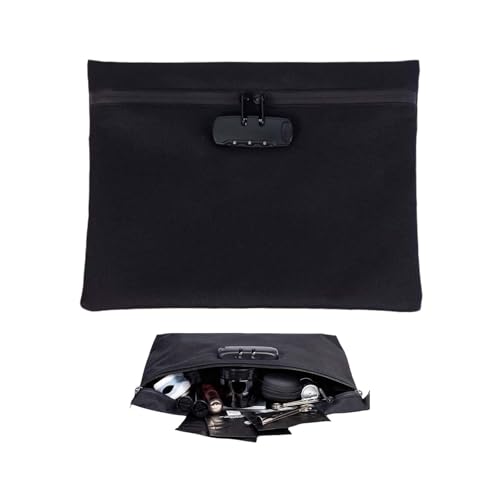 Brandsäker och vattentät väska med lås, plånbok med lås, 24,5 cm x 16,5 cm luktfri väska med kombinationslås, brandsäker vattentät dokumentväska med lås (svart)