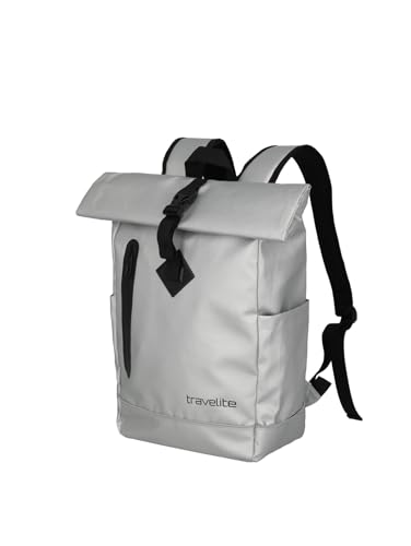 Travelite Rolltop ryggsäck vattentät, cykelryggsäck, fritidsryggsäck med rulltopp, stängning och reflektorer, bas, 48 cm, 19 liter, SILVER, Rucksack 48 cm, Vattentät ryggsäck med hoprullad stängning