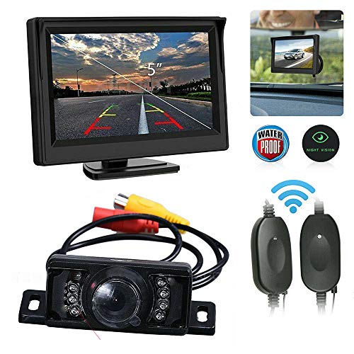 Hodozzy Trådlös digital backkamera, bilkamera med 5-tums LCD-skärm vattentät kamera IP69 nattseende backkamera för husbil/lastbil/trailer/fordon 12V-24V