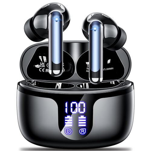 Bluetooth 5.3-hörlurar, trådlösa hörlurar med 4 ENC brusreducering, mikrofon, Bluetooth Hi-FI stereoljud, 36 timmars uppspelningstid, IP7, vattentät, LED-skärm, pekkontroll