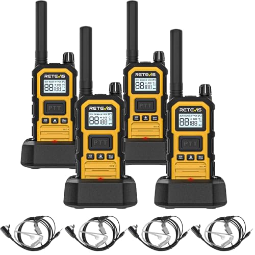 Retevis RB648 Plus Lång Räckvidd Walkie Talkie, IP67 Vattentät 2-Vägsradio med Hörlurar, Gruppsamtal, 2000mAh, VOX, Professionella Walkie Talkies för Tuffa Industriella Miljöer (4 St, Gul)