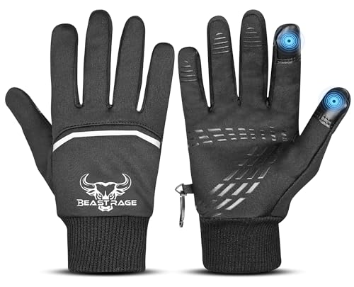 BEAST RAGE Vattentäta vinterhandskar för barn, vinter sport cykelhandskar för barn, varm pekskärm, halkfria termiska utomhus vindtäta handskar för pojkar flickor, cykelvantar som rider löpning (svart,