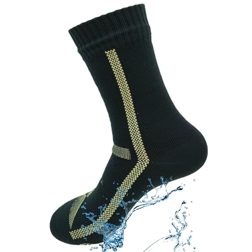TOURGO Vattentäta strumpor för män och kvinnor, vattentäta löparstrumpor, vandring cykling kajakpaddling CoolMax & andningsbara, Svart/grön, 43.5-45 EU