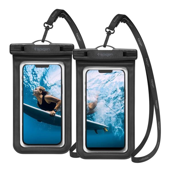 Spigen A611p Universellt Vattentätt Flytande Mobilfodral 2-Pack Matt Svart