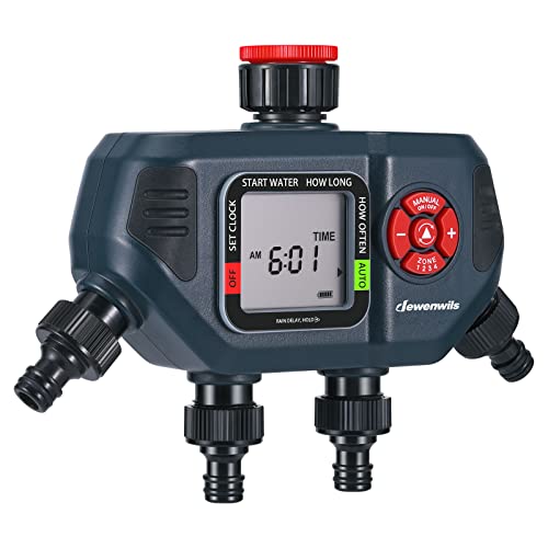 DEWENWILS Bevattningsdator 4 utgångar, vattentimer med manuell regnfördröjning, 4 oberoende kontrollerade utgångar, 3/4 tums anslutning, bevattningskontroll för trädgård, CE-certifierad