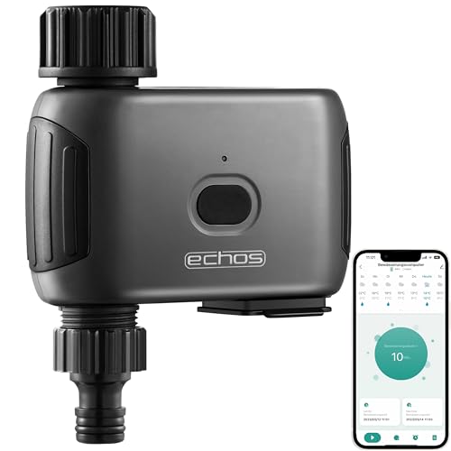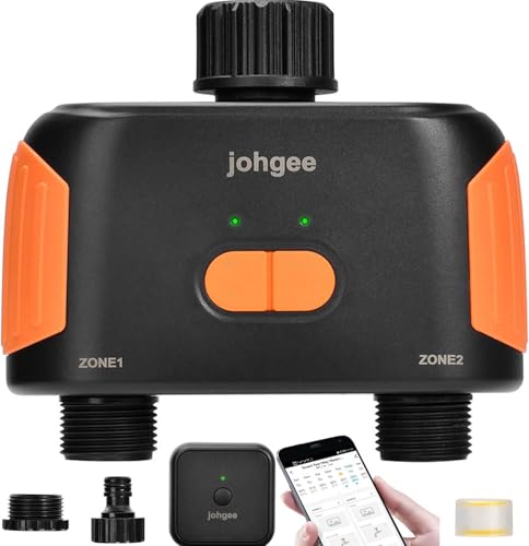 Wifi-bevattningsdator med 2 oberoende utgångar, Johgee, smart vattentimer med app/röststyrning, automatisk trädgårdsbevattning, bevattningsklocka för trädgård, vattentät IPX5