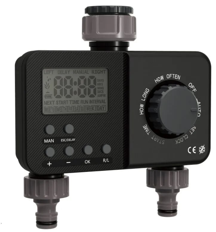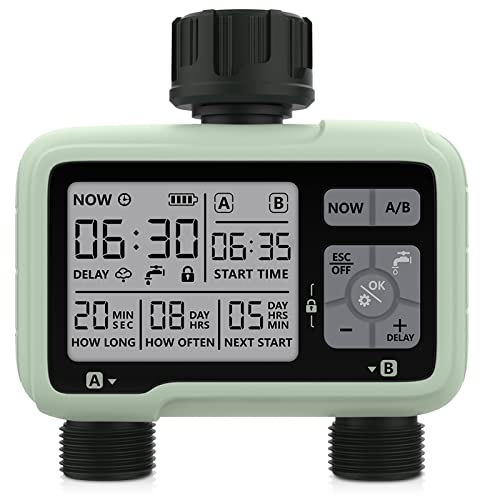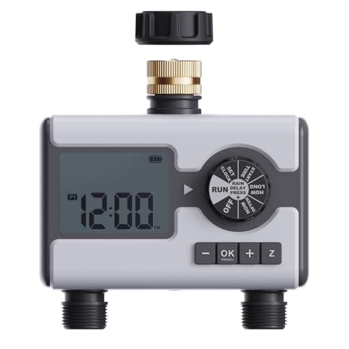 CROSOFMI Vattentimer 2 utgångar, trädgård vattentimer automatisk bevattning/LCD-skärm/enkel drift/barnlås/kraftigt regnfördröjning/manuell bevattning.
