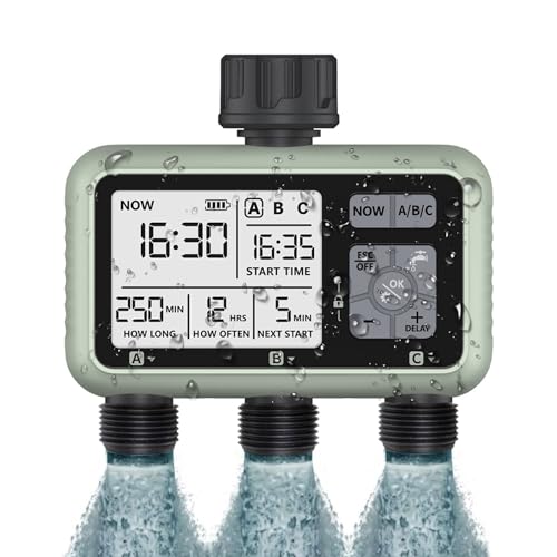 Johgee 3 zoner vattentimer, trädgårdsslangtimer med regnfördröjning, manuell vattning, programmerbar sprinklertimer för gräsmatta, trädgård, pool