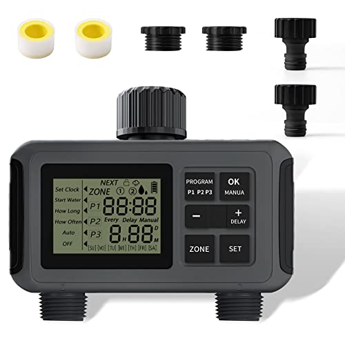 YIYEGO Bevattningsdator 2 utgångar, smart bevattningsmaskin 3/4 tums anslutning, upp till 6 bevattningsprogram per dag, programmerbar vattentimer för trädgård, växthus, gräsmatta