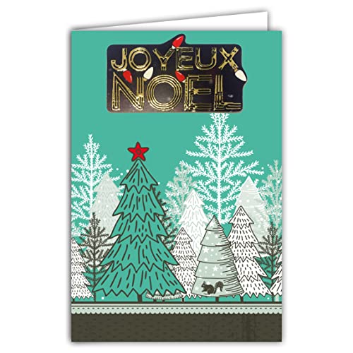 Afie 61-6052 God julkort med kuvert och limning i glänsande guld guld glittrande girlang ljusgrön vattenträd vit skog under snö ekorren vinter
