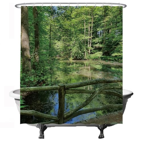 Ulticool duschdraperi – natur, bro, vattenträd – 180 x 200 cm – tvättbart – antimögel – med 12 ringar – grönt