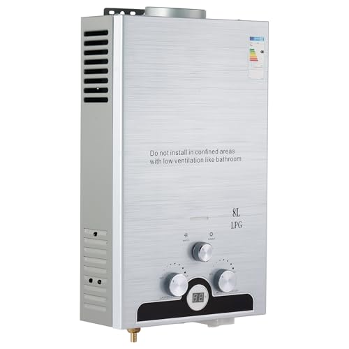 16LPM Gas Genomströmningsvärmare, 32KW LPG Varmvattenberedare, Vattenvärmare Fungerar vid Lågt Vattentryck med Propan och Butan, lämplig för Hemmet Husbilar