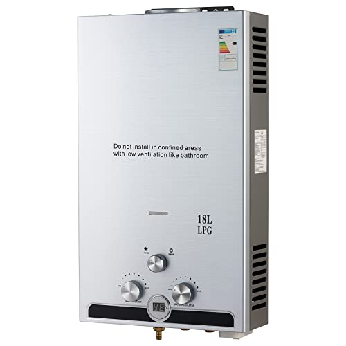 Furvveerr Gasvattenberedare Gasvärmare LPG 18L Propan med Vinter- och Sommarläge 36 KW Väggmonterad Gaspanna Utan Tank Automatisk Omedelbar Vattenvärmare,Varmt Vattenutlopp 18L/min