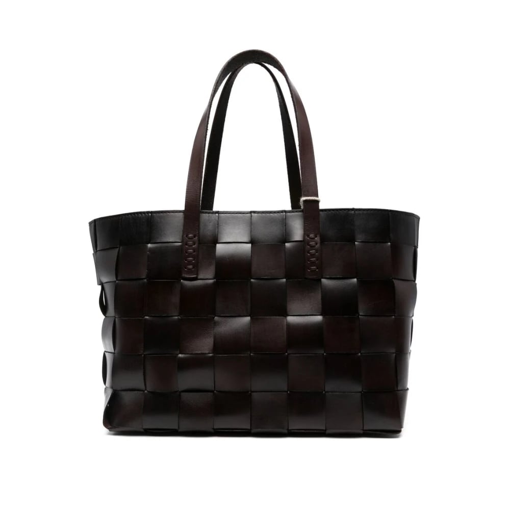 Dragon Diffusion, Väskor , Dam, ONE Size, Läder, Svart Vävd Läder Toteväska