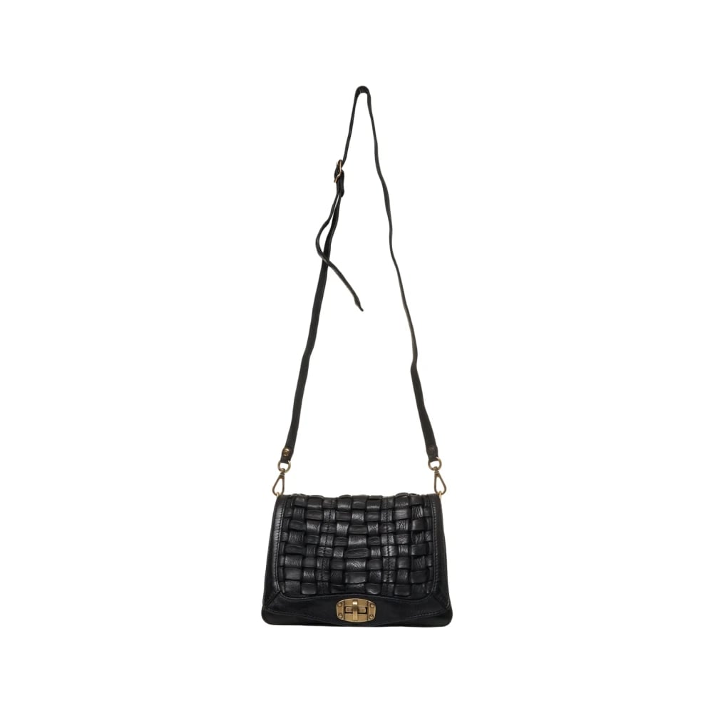 Sista Paris, Väskor , Dam, ONE Size, Läder, Svart Vävd Läderskulderväska