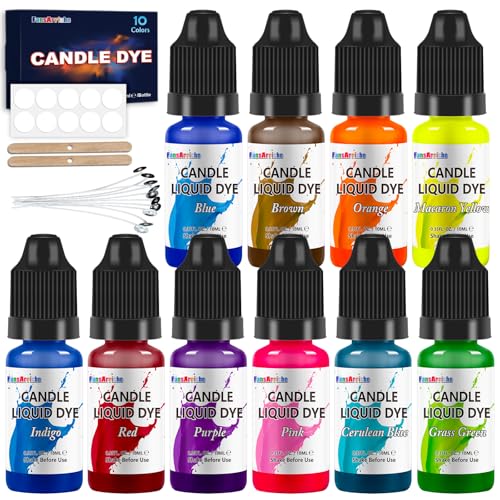 FansArriche Ljusfärg – 10 färger flytande oljebaserad färg för vax, levande candle dye paint för ljustillverkning, mycket koncentrerad naturlig ljusfärg