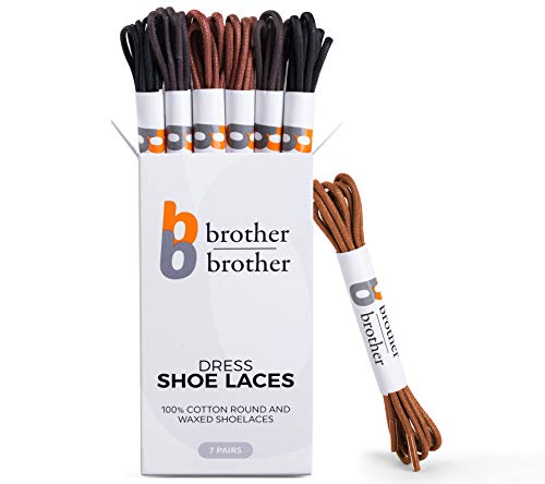 BB BROTHER BROTHER Färgade Oxford skolaser (7 par) 100% bomull runda och vaxade skosnören för klädskor presentbox med 2 svarta, 2 Brown, 2 mörkbrun, 1 färg