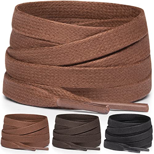 Miscly [3 Par] Platta Vaxade Skosnören i Bomull för Kängor och Sneakers 91cm Brun