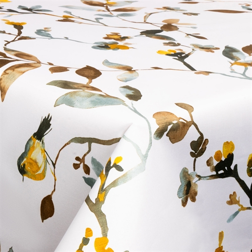 Textil vaxduk med akrylbeläggning - Grenar och fåglar - 140 cm bred - På metervara