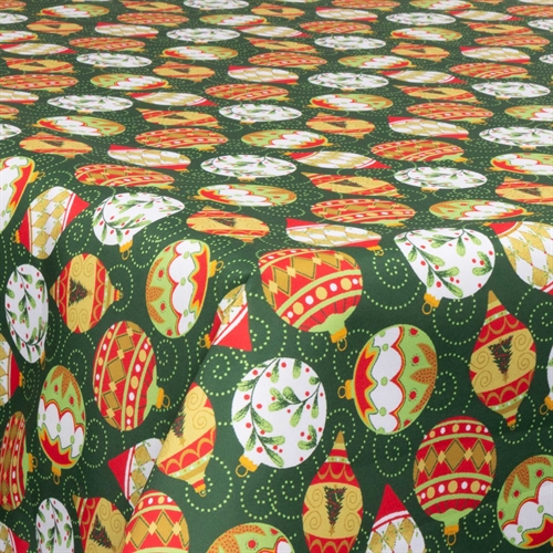 Textil vaxduk med akrylbeläggning - Med julmotiv - Christmas baubles - 140 cm bred - På metervara