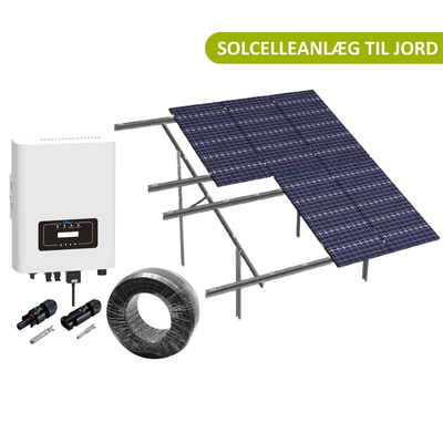 10kW komplett 3-fas solcellanlägg - Markbaserat anlägg, DEYE växelriktare, Alu celler - Rader : 2, Riktning solceller : Stående, Solceller kW : 9,8