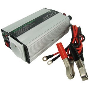 Växelriktare 12V/230 V 300 W, omvandlar ström till elektriska apparater och laddar batterier i fordon eller campingplatser.