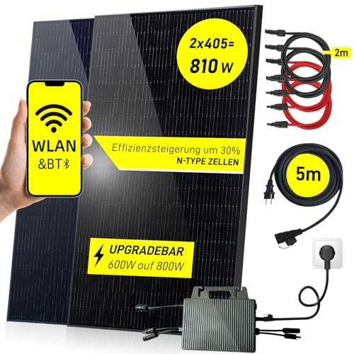 Balkong solsystem 800 W, 800 W/600 W solkit plug and play, solpanelsats, plug and play solkit 800 W Österrike, 2 x solpaneler 405 W, 1x växelriktare 800 W/600 W, 5 m kabel.