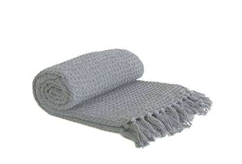 Emma Barclay vaxkaka – återvunnen bomull vanlig våffla texturerad stol soffa set överkast över filt i silvergrå – 50 x 60 (127 x 152 cm)