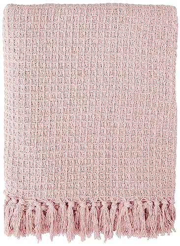 Emma Barclay vaxkaka – återvunnen bomull vanlig våffla texturerad stol soffa set överkast över filt i rosa – 50 x 60 (127 x 152 cm)