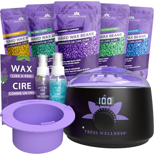 AURAFINE Digital vaxset, vaxvärmare hemma med vaxpärlor och silikonkruka, vaxhår med vaxmaskin för brasiliansk bikini, ögonbryn, ansikte, ben och hela kroppen.